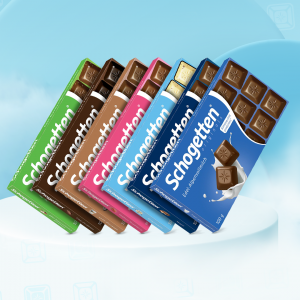 Schogetten é uma das mais tradicionais e saborosas linhas de chocolates da Alemanha. Lançada em 1962, a marca é famosa pelos seus autênticos chocolates que não precisam ser quebrados em tabletes, pois já vêm divididos em porções pequenas, como bombons deliciosos e fáceis de degustar e compartilhar com todos. Atualmente são ainda mais cremosos e derretem facilmente na boca, pois têm como ingrediente, o puro e delicioso leite dos Alpes. Com 9 sabores irresistíveis, cada um tem seu Schogetten favorito. Você já descobriu qual é o seu?